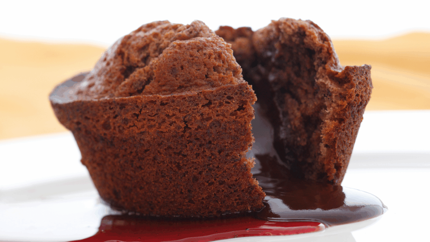 „ROTWEINKÜCHLEIN MIT ZART SCHMELZENDEM HERZ UND ZIMTSAHNE“